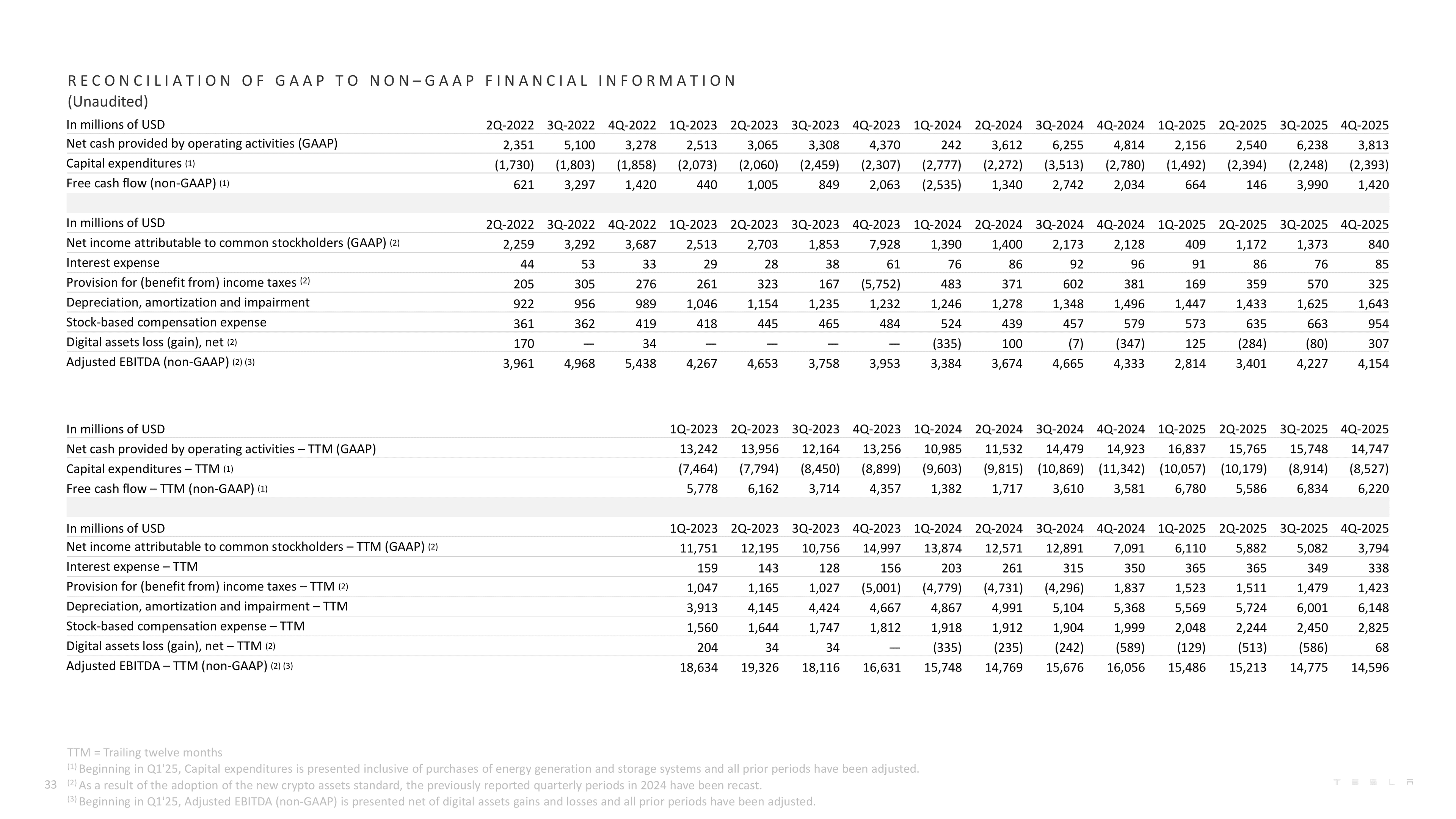 Did Tesla's free cash flow go negative in any quarter? Show the supporting chunk.
